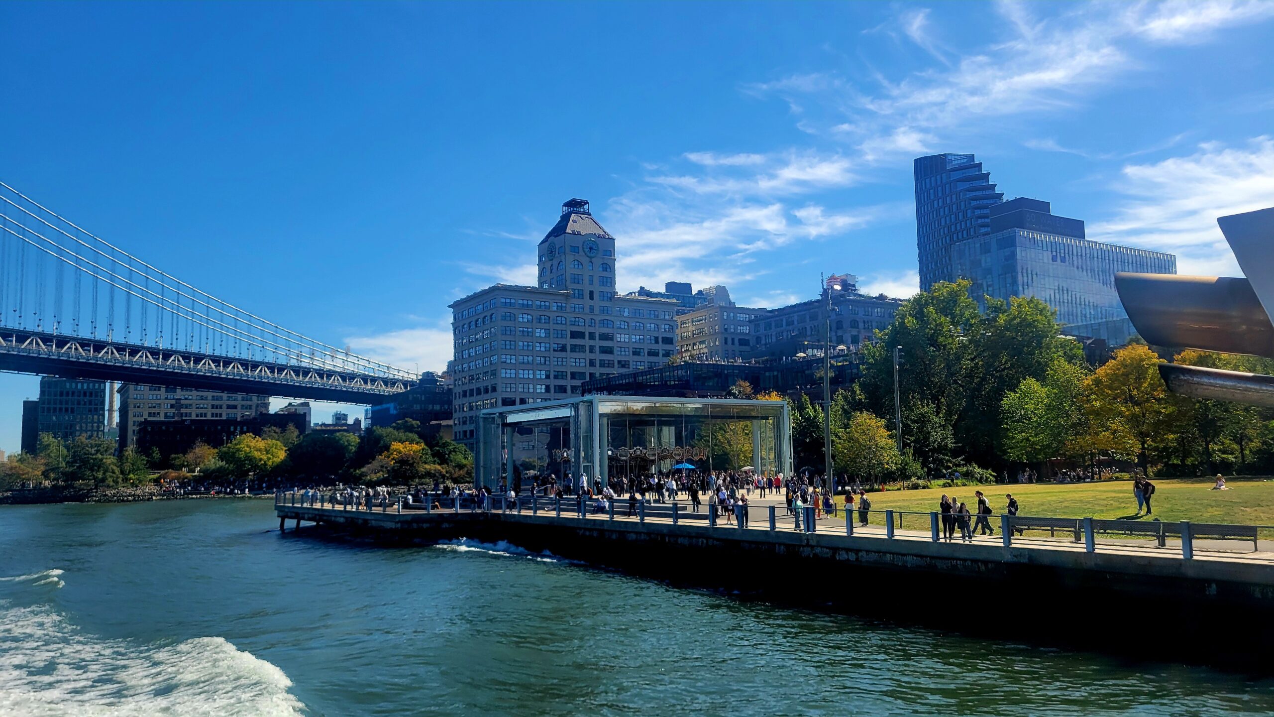 Départ pour DUMBO en ferry, puis immersion sous les ponts mythiques de Brooklyn. Pavés centenaires, anciens entrepôts de briques et vues iconiques sur le pont de Manhattan racontent la métamorphose de ce quartier industriel devenu l’un des symboles du Brooklyn créatif. Promenade le long du Brooklyn Bridge Park face à la skyline de Manhattan,
